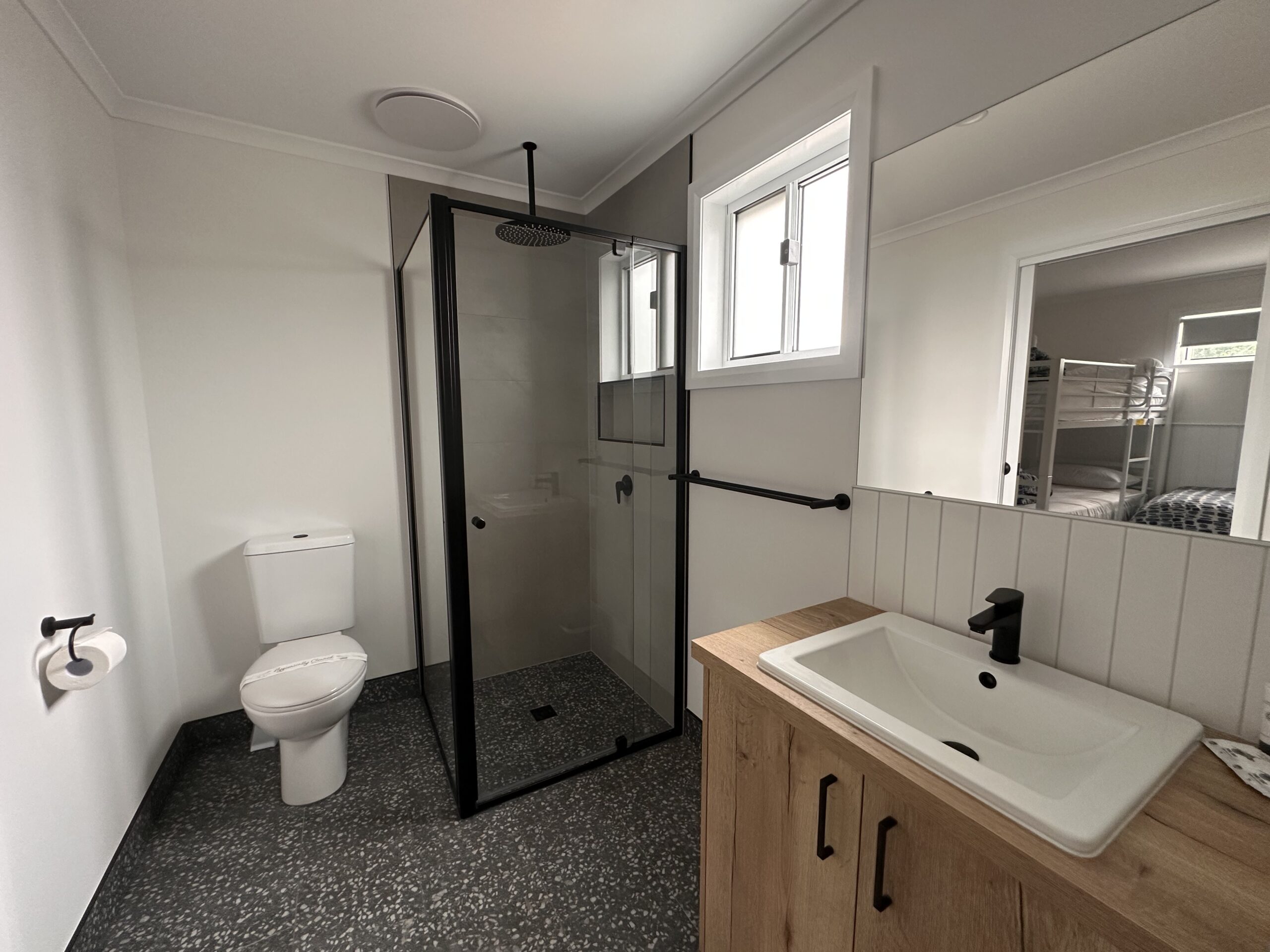 *Note: There is a option to open a interconnecting door between two cabins, to offer a 4 Bedroom, 2 Bathroom layout. This can sleep a max of 10 guests. Please call our reception on 03 5331 2281 to book.